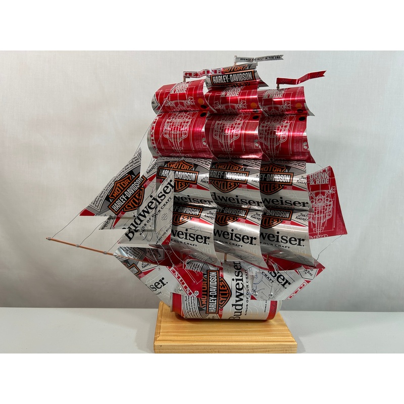 This Anheuser Busch Budweiser Harley-Davidson Beer Can Ship was handcrafted in WI. This is the ship you will receive in your order. This ship is 14″x4″x12″