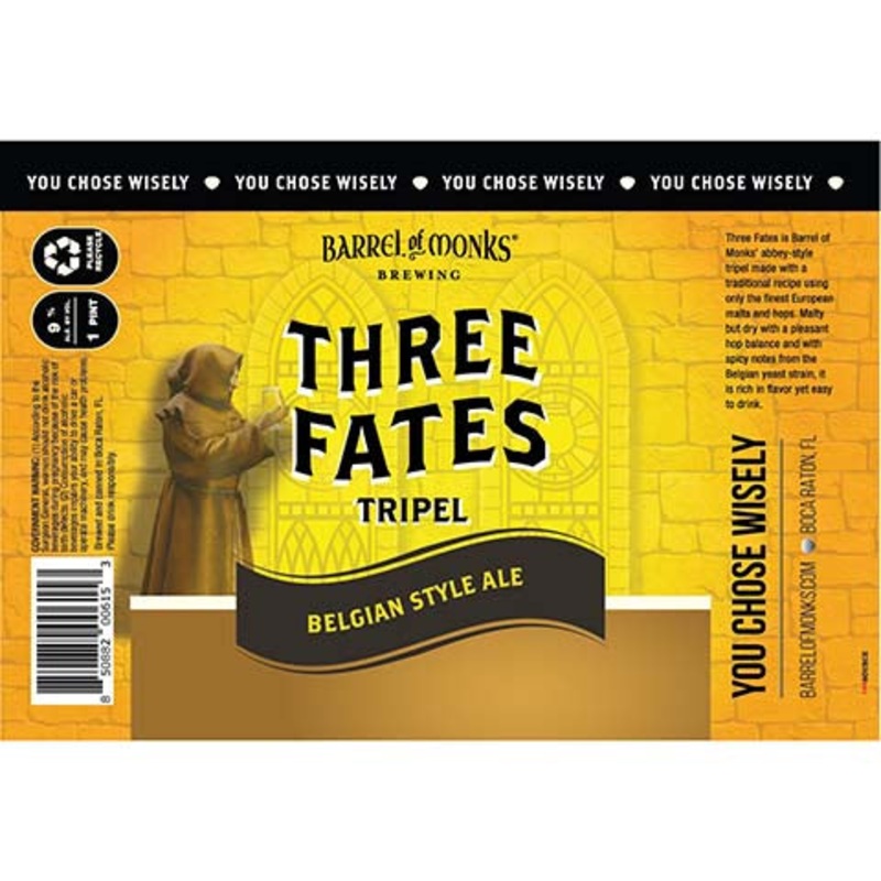 Barrel of Monks Three Fates Tripel Belgian Style Ale 16OZ SINGLE CAN