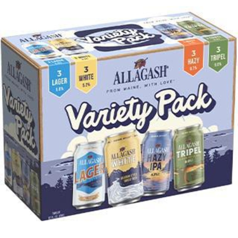 Variety PackWitbier, Tripel, Lager, IPAEnjoy four of our most popular styles in one easy-carrying 12-pack. Weve packed every one of these with three cans of each of the following beers, so theres something for everyone, wherever you happen to be:Allagash W
