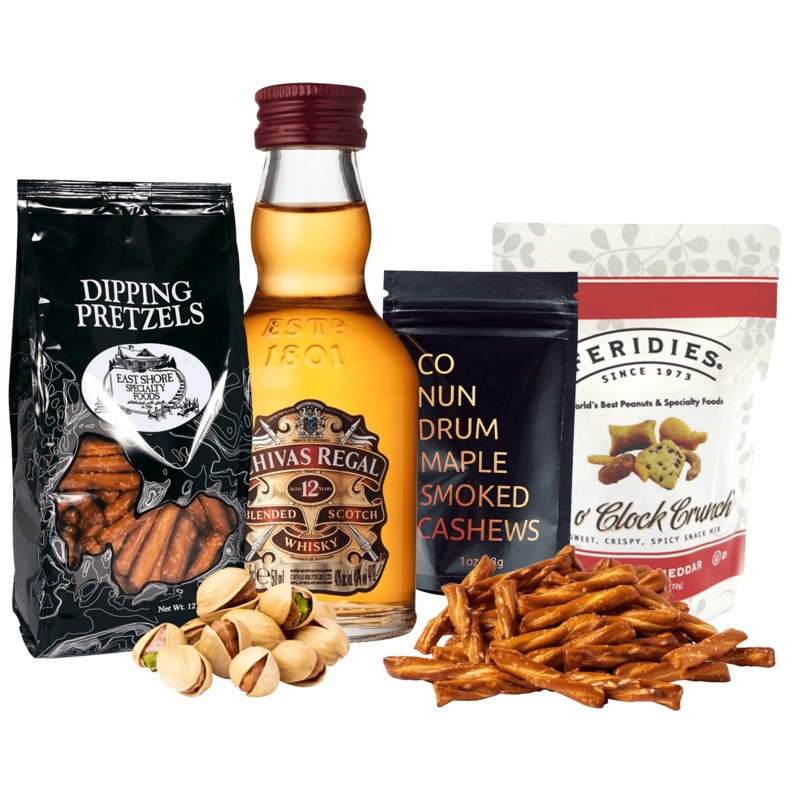 The Chivas Regal Gift Basket includes a 750ml bottle of Chivas Regal 12 Year OldBlendedScotch Whisky and four gourmet snacks delivered in a themed gift box of your choicecomplete withyour personal gift message.
