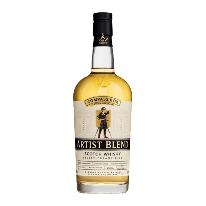 Compass Box Artist Blend is a new range of highly approachable whiskies which are aimed at not just whisky connoisseurs, but at non-whisky drinkers and cocktail drinkers as well. This is a marriage of fruit-forward and complex Highland malt whiskies with delicate Lowland grain. Its a rich, full-bodied whisky with lots of fruit and spice.