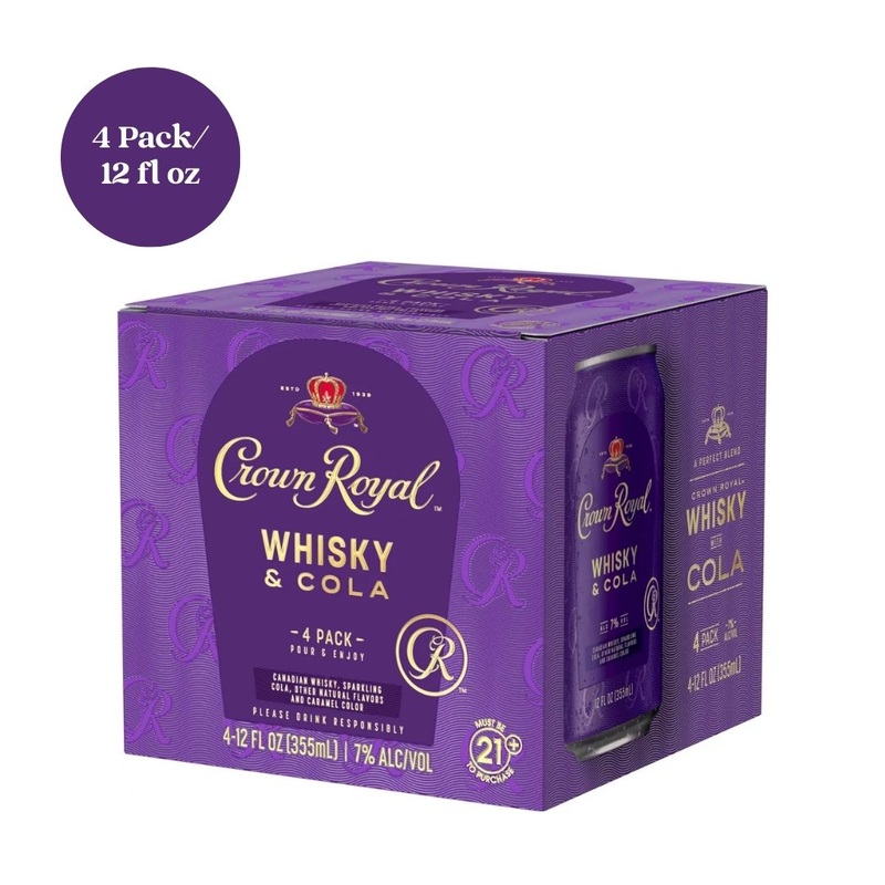 Crown Royal Whisky & Cola is the ultimate ready-to-drink cocktail for whisky lovers. With the smooth richness of Crown Royal Canadian whisky perfectly paired with classic cola, this 4-pack offers convenience without compromising on flavor.Composition:A pre