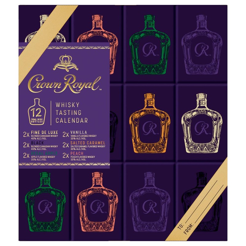 Gift an extraordinary range of Canadian whiskies with the Crown Royal Whisky Tasting Calendar. Featuring mini bottles of Peach Flavored Whisky, Salted Caramel Flavored Whisky, Black Blended Canadian Whisky, Fine De Luxe Blended Canadian Whisky, Regal Apple Flavored Whisky and Vanilla Flavored Whisky, this gift set offers an elevated whisky tasting experience. Crafted to perfection, each whisky boasts a distinct, refined flavor. Simply serve neat or mix with cola and pour over for a classic, refreshing tasting cocktail. Includes two 50 mL bottles of Peach Flavored Whisky, two 50 mL bottles of Salted Caramel Flavored Whisky, two 50 mL bottles of Black Blended Canadian Whisky, two 50 mL bottles of Fine De Luxe Blended Canadian Whisky, two 50 mL bottles of Regal Apple Flavored Whisky and two 50 mL bottles of Vanilla Flavored Whisky.