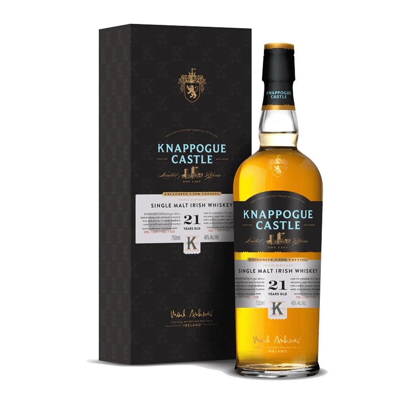 Single Malt IrishWhiskey | 46% ABVCommercial Description:The Knappogue Castle 21 Year Old Single Malt Irish Whiskey is an artful blend of two single malts. They were both created in copper pot stills and matured in ex-Bourbon casks one for 23 years (1994)