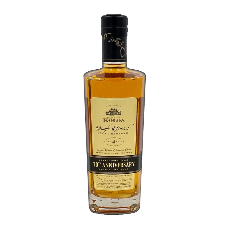 Koloa Kauai 10th Anniversary Single Barrel Rum - Koloa Kauai 10th Anniversary Single Barrel Rum is released in celebration of Koloa's 10th Anniversary. Six individual barrels of 4-Year Aged Hawaiian Rum were individually selected for this limited release.