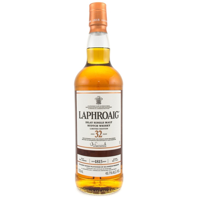 Laphroaig's 200th anniversary celebrations have been leading up to this extraordinary bottling of rare single malt Scotch whisky from Islay all through 2015. Just 5,880 bottles of this exclusively first-fill Oloroso Sherry cask matured 32 year old Laphroai
