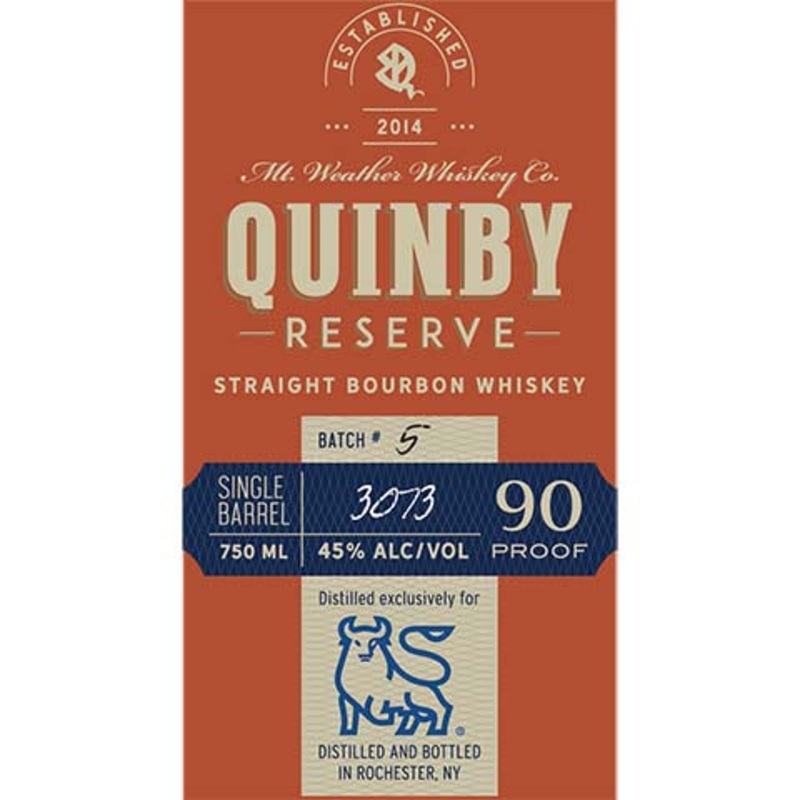 Bourbon Whiskey| 45% ABVCommercial Description:Single Barrel Quinby Reserve Straight Bourbon Whiskey