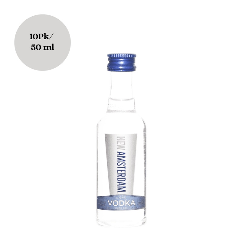 New Amsterdam Vodka in a 10-pack of miniature bottles is perfect for parties or as a portable option for tailgating. This vodka is renowned for its exceptionally smooth finish and versatility in cocktails, providing a premium vodka experience.