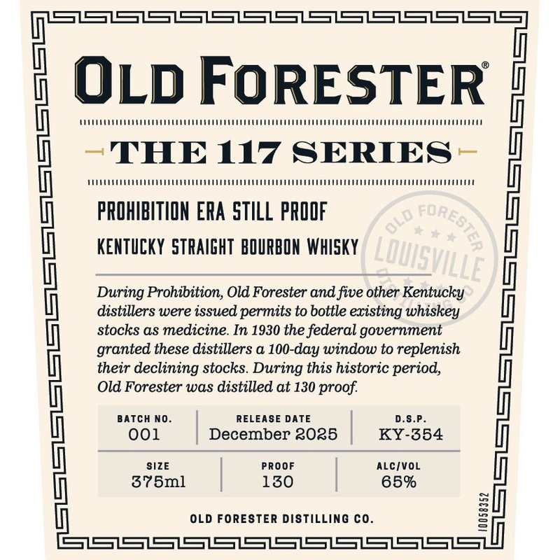 Old Forester 117 Series Prohibition Era Still Proof is a premium Kentucky Straight Bourbon Whiskey that pays homage to a significant chapter in American whiskey history. During Prohibition, distillers like Old Forester were granted permits to bottle whiskey as medicine. In 1930, the government allowed a 100-day window for these distillers to replenish their dwindling stocks.