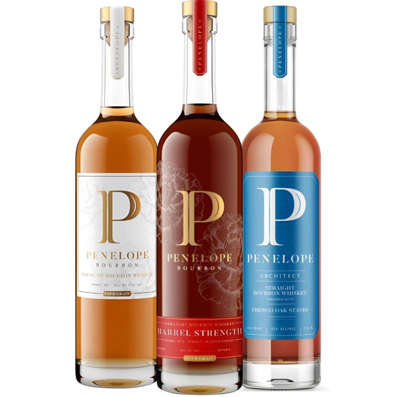Dive into the world of artisanal American whiskey with the Penelope Bourbon Bundle, a premium collection featuring three of Penelopes most acclaimed expressions: Four Grain, Barrel Strength Batch 09, and Architect Bourbon Finished with French Oak Staves. This bundle captures the bold innovation and nuanced craftsmanship that define the Penelope brand.
