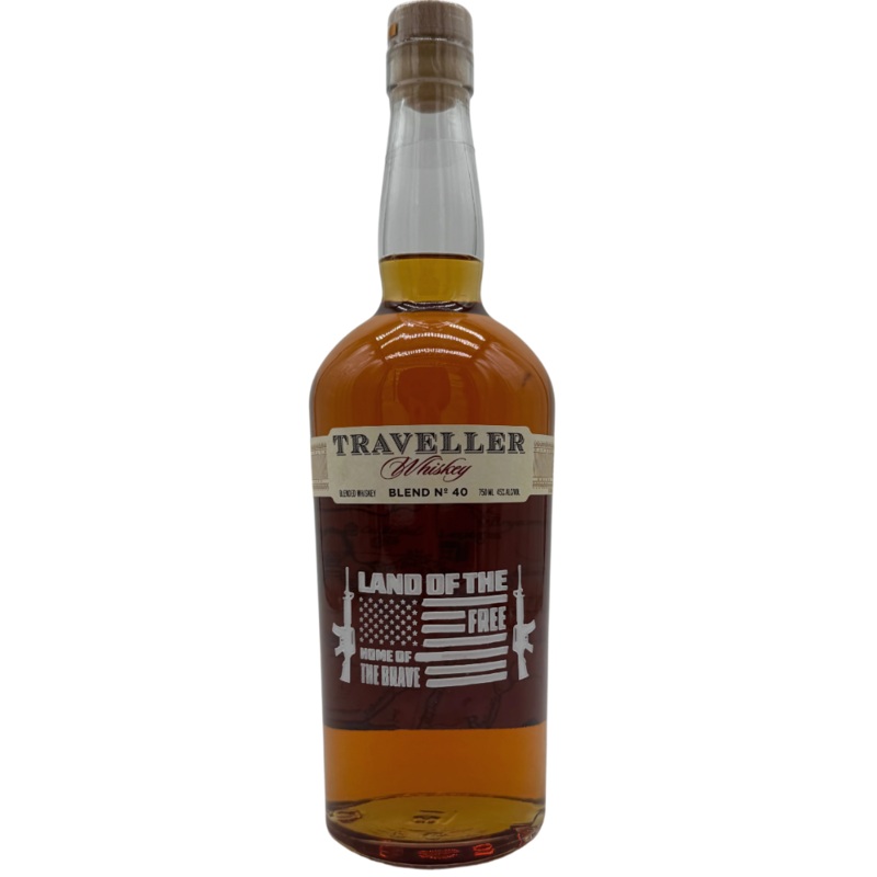 Celebrate freedom, craftsmanship, and bold flavor with the Traveller Whiskey LAND OF THE FREE Limited Edition Etched Bottlea patriotic tribute to American spirit, both in the bottle and on the label. This special-edition release features a deep-etched Land of the Free / Home of the Brave design with American flag and rifle artwork, permanently engraved by MemoryBottles.com, the nations premier custom spirits engraver.